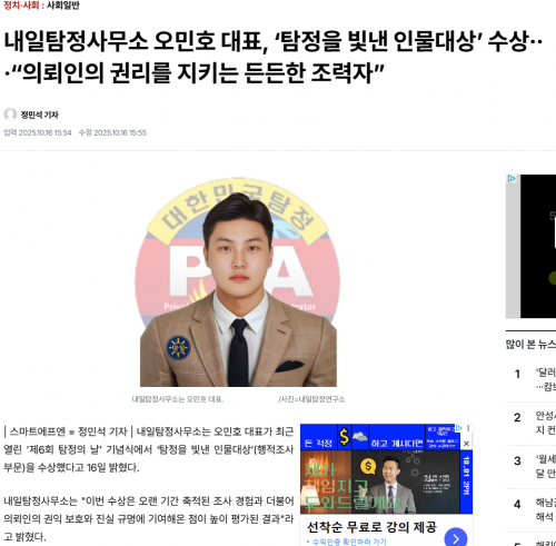✅2025년 공인탐정 협회 PIA 행적조사 부문 수상